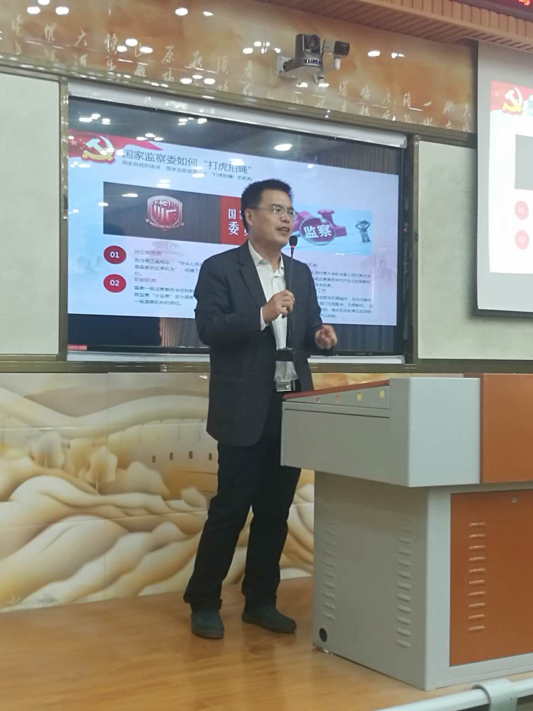 祁书记通过回望两会,从宪法修正案、国家设置监察委及国家机构改革三个方面向全体党员阐述了两会以来全国上下发生的巨大变化;重点分析了修正宪法、设置国家监察委和进行国家机构改革对决胜全面建设小康社会、建设中国特设社会主义现代化强国、实现中华民族伟大复兴的重要意义。祁书记以毛泽东同志1970年的一篇文章《全世界人民团结起来,打败美国侵略者及其一切走狗》结束党课。