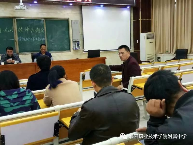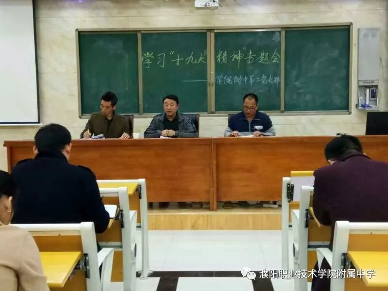 学习贯彻落实党的“十九大”精神,是全党全国当前和今后一个时期的首要政治任务。根据我校党总支的安排,我校三个支部先后组织本支部党员干部集中学习十九大精神。集中学习内容主要为1.习近平总书记在十九大闭幕上的讲话;2.《拥抱新时代 创造新辉煌》——深入贯彻落实党的十九大精神系列评论一;3.《人民日报》评论《夺取新时代中国特色社会主义的伟大胜利》;4.《学习时报》刊登的文章《领会好党的十九大精神的基本要义》;5.党的十九大对党章修改的部分。 我校党员干部纷纷表示,要认真学习,深刻领会党的十九大精神,不忘初心,牢记使命,在今后的工作中用实际行动贯彻落实党的十九的精神。