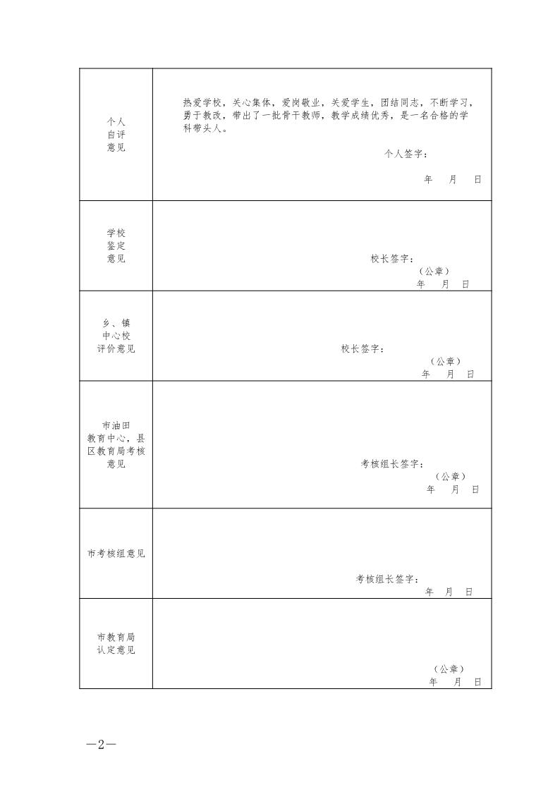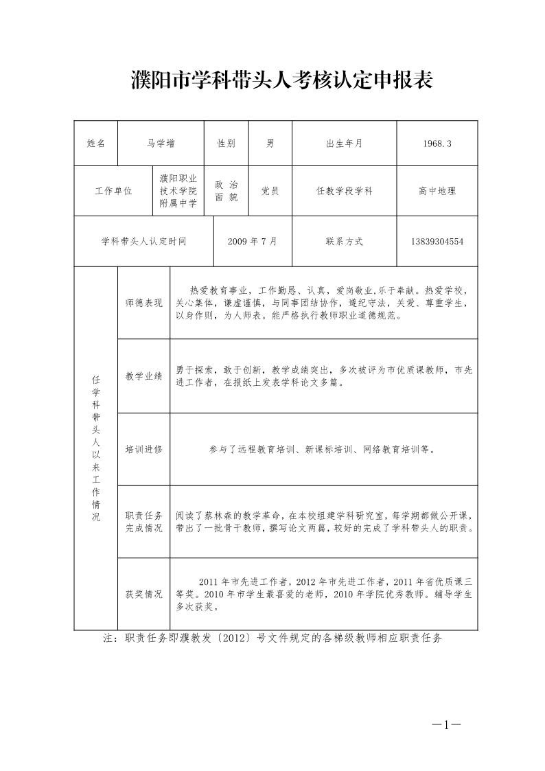 马学增濮阳市学科带头人考核认定申报表