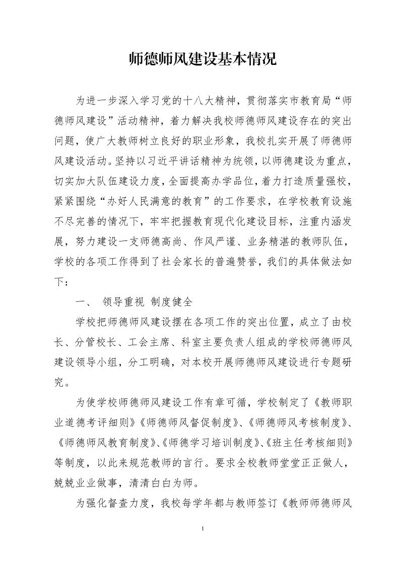 师德师风建设基本情况