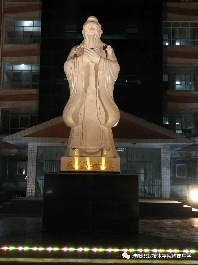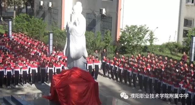 四月二十三日为世界读书日,是日阳光普照,学院附中师生共聚,隆重举行孔子像落成典礼,河南大学濮阳工学院、濮阳职业技术学院院长刘东波,工会主席褚衍席为圣像揭幕。爱心托举、教书育人、立德树人是附中三百名教职员工的教育追求,打造“书香附中”“ 温润附中”“ 人文附中”是六千名师生员工的共同目标。在附中教育发展进程中,孔子像的落成典礼,意义深远。