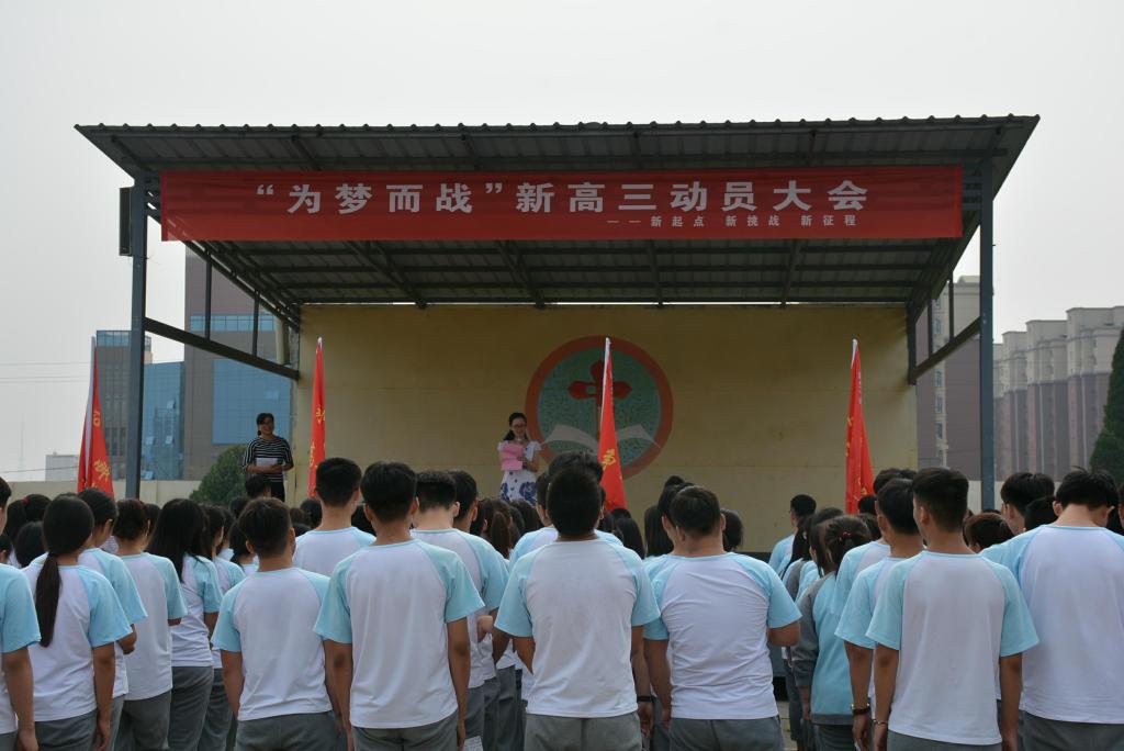 带着对新学期的美好祝愿,带着对2019年高考的美好憧憬,6月18日上午,新高三年级在学校操场隆重举行“为梦而战”新高三,新挑战、新征程动员大会。校长田孝民,党总支书记祁立新,副校长杨彦廷,高中部年级主任刘现强及新高三全体师生参加了本次动员大会。大会由年级主任王振平主持。