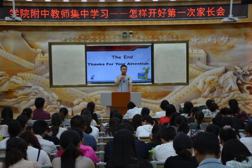 开家长会是使家长更好地了解学校、了解自己孩子的学校生活;学校更好地了解家长,了解学生在家里的情况,从而使家长和学校形成合力,更好地培养和教育学生。韩金昌老师以“如何开好第一次家长会”为主题,结合班级管理经验,以幽默生动的语言与全体老师进行了交流、分享。最后,他讲到:家长会只是形成学校、家庭教育合力的一种途径,家长会到底怎样开,具体的模式没有定论。但基本的原则应该是有利于素质教育,有利于老师与家长、学生的相互交流与协作,有利于孩子们身心健康发展,有利于学校、班级工作的开展。