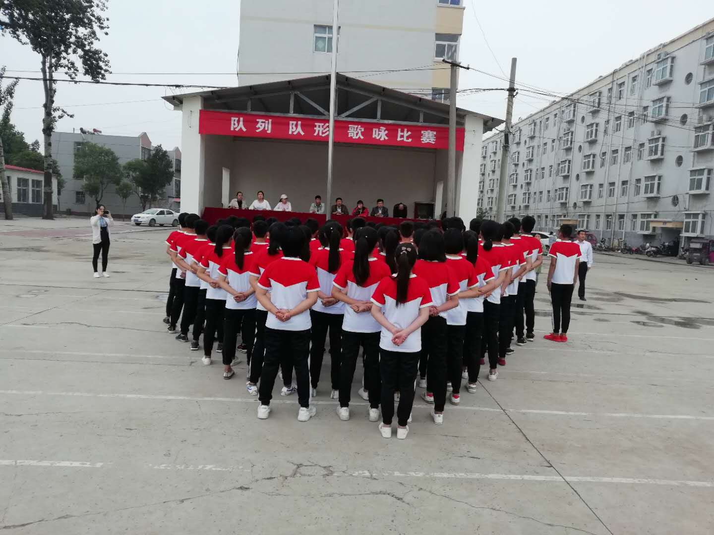 我校初中部举行“队列、队形、歌咏比赛”