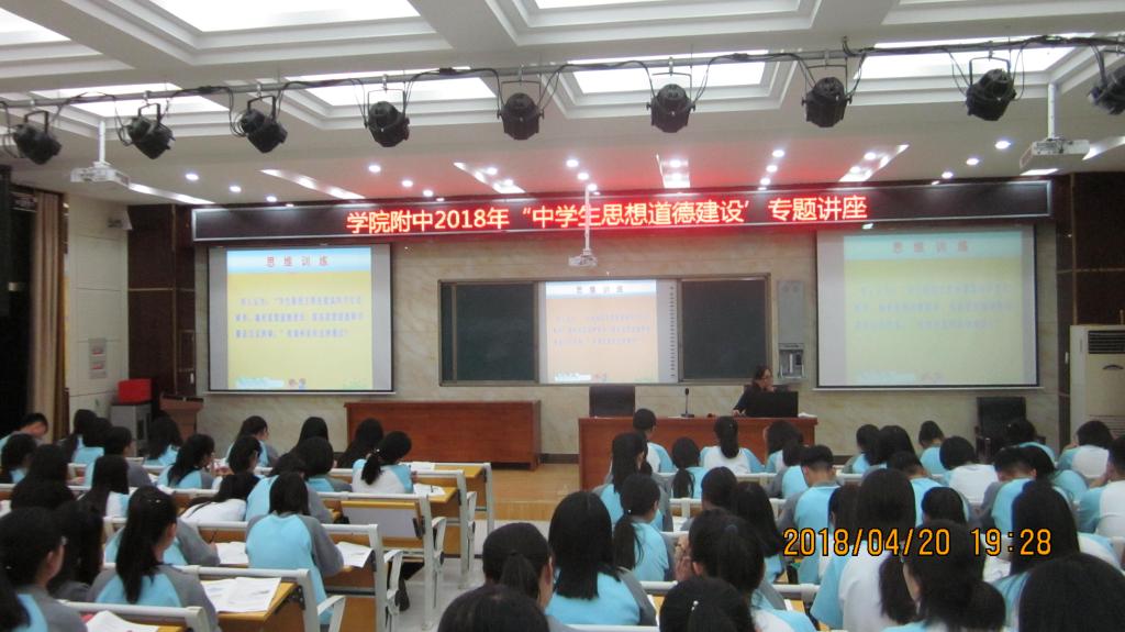 4月20日,我校政教科组织举办了“中学生思想道德建设”专题讲座。 裴利花老师围绕“喜迎十八大,让中学生思想道德建设走入我们的生活”为主题。着重讲述与人为善、遵纪守法、坚忍勤勉、学会感恩、回报社会等许多真实人物事例和生动的故事,深入浅出的讲述如何培养高尚道德和坚强意志、如何端正心态、如何乐观积极去塑造幸福成功的人生等。使同学们深受鼓舞,更加明确了学习的方向,受得了良好的教育效果。