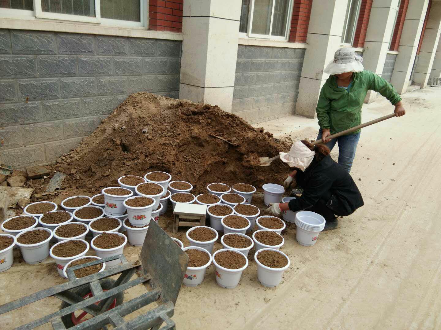 4月27日,学校副校长陈学锋对总务科做出选择新苗圃地,展开新苗品种培育的工作的安排。 总务科科长房慕钦、花木培育专员田魁伟对学校各个花圃进行察看,最后决定在竹园区开展花木新苗的培育工作。 在竹园花木培育基地,工人把有机肥料与新土均匀混合,填装花盆,一一铺展开,大面积的水喷淋浇,花木种子栽种或新花苗的移种,于阴凉处分类摆放,各项工作有条不紊的持续进行。 花木新苗的培育不仅开阔了花木种植选择的空间,同时也大大节省了我校环境建设的开支。