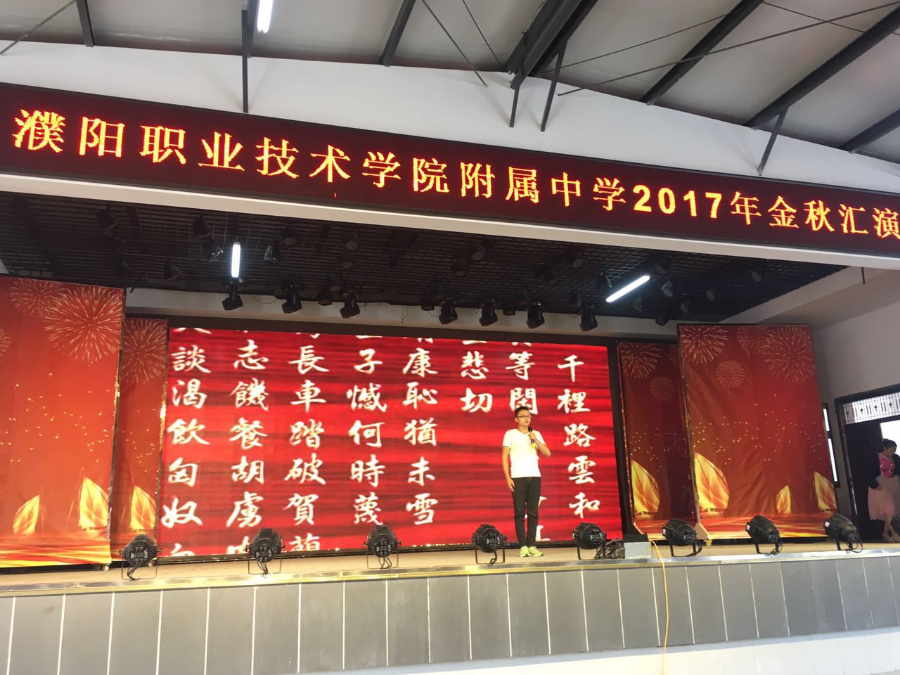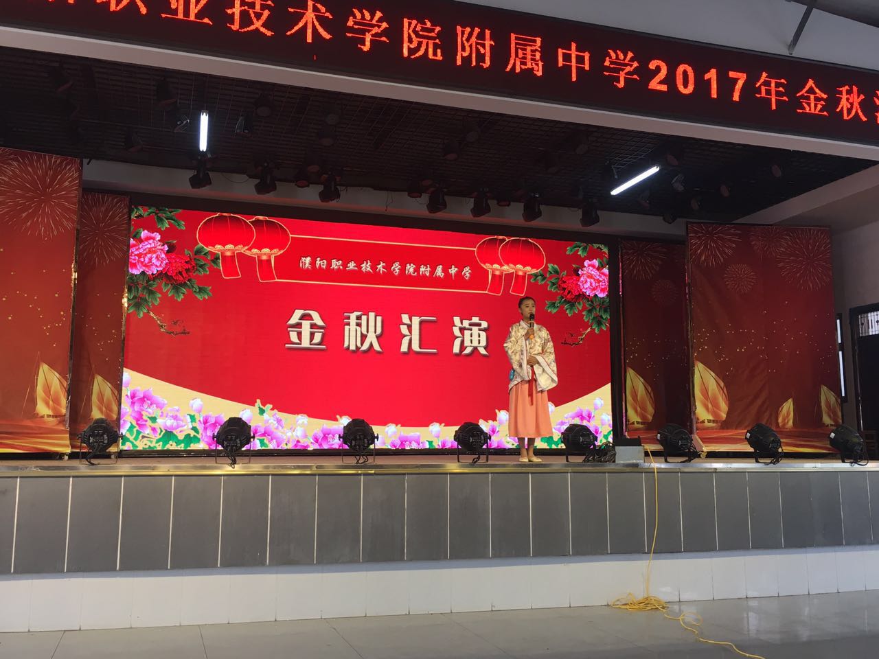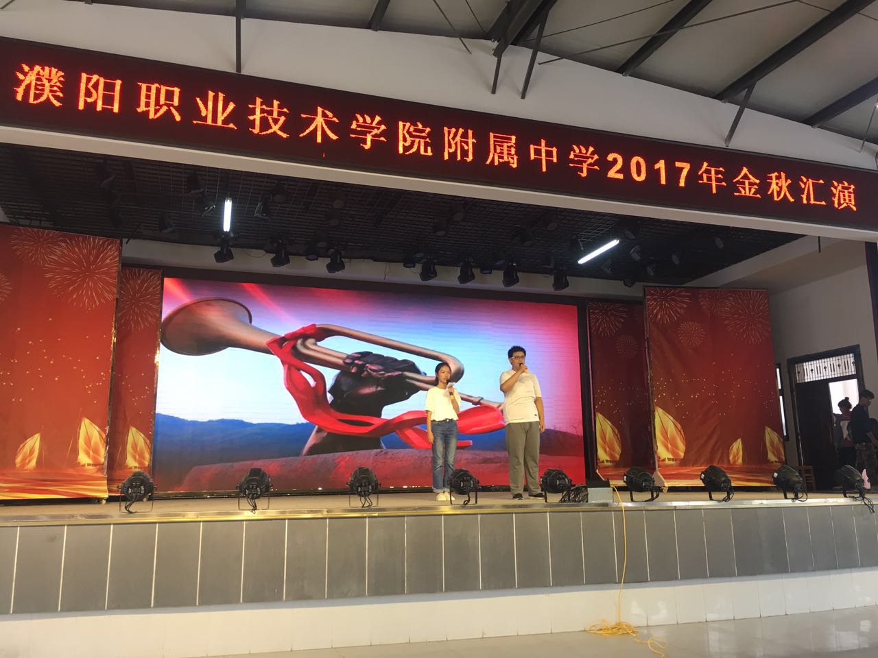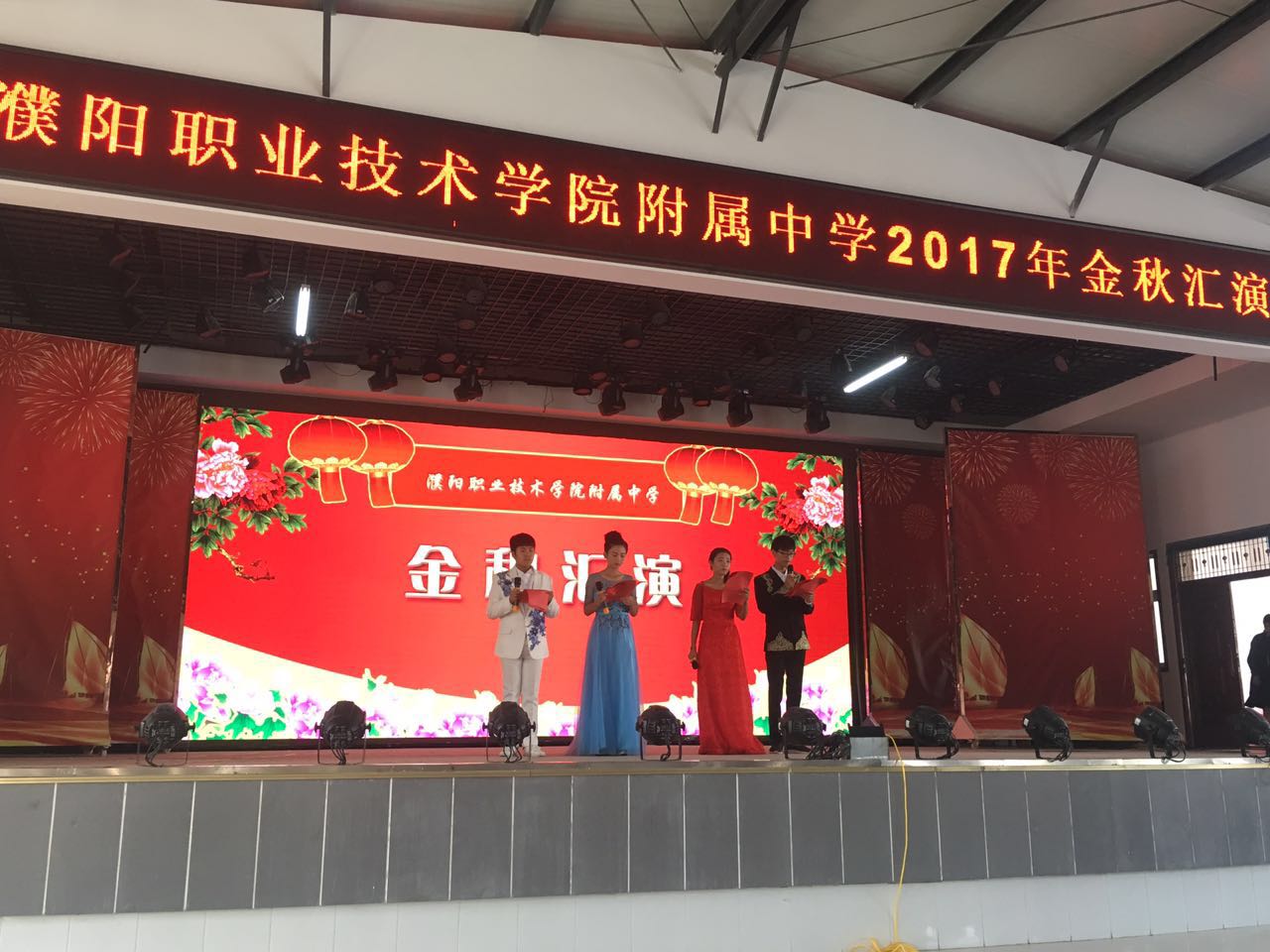 金秋送爽,硕果飘香,为歌颂祖国,喜迎国庆,欢度佳节,在国庆与中秋双节来临之际,2017年9月30日上午,我校中专部全体师生在新餐厅二楼举行《金秋汇演》。我校领导祁立新书记及中专部全体领导和老师们前来观看。
