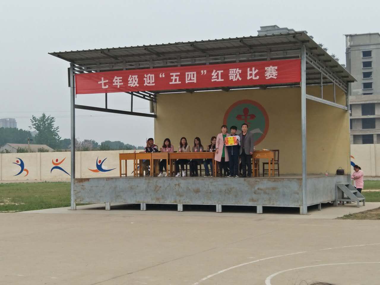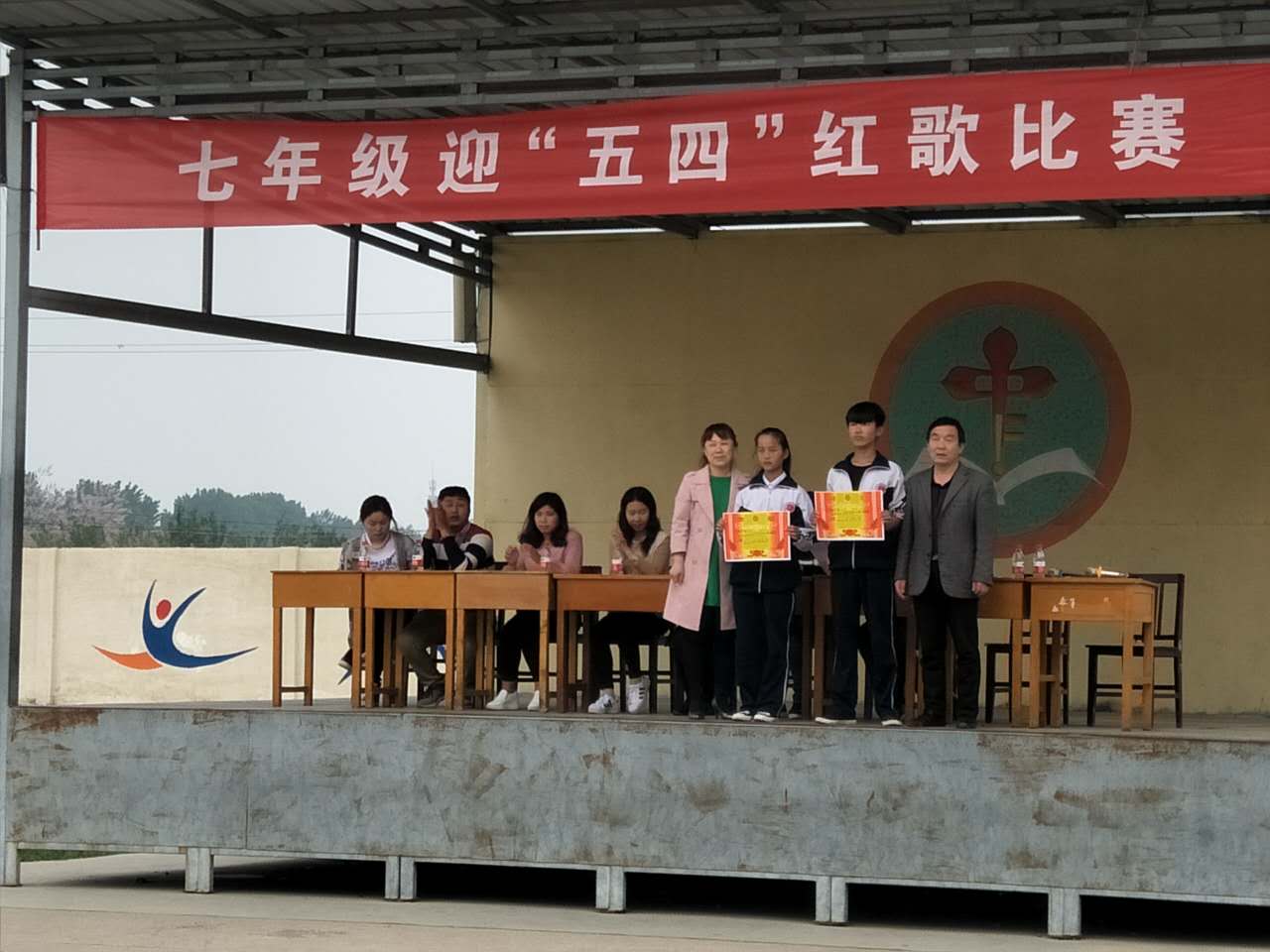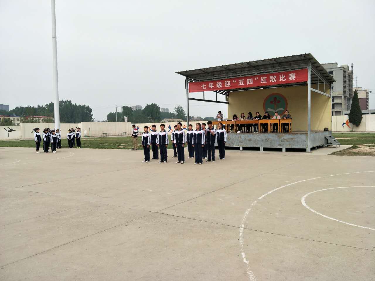 “一首红歌一面旗,一支红曲一把号”。4月24日下午3点,七年级全体师生在附中操场举行“弘扬五四精神,创建和谐校园”红歌比赛,迎接第68个中国青年节的到来。 本次比赛中李淑慧主任和武善立做了重要讲话,张焕玲等七位老师担当评委。赛场上,同学们阵容整齐,声音洪亮,感情真挚,唱出了对祖国的赞美和对未来的憧憬,展现出了新时代少年学生们健康活泼、奋发向上的良好精神面貌。 一首红歌就是一面引领同学们前进的旗帜,一首红歌就是一曲激励同学们奋进的号角。真诚的希望同学们以今天的红歌比赛为契机,在红歌的感召下,把对祖国母亲的热爱,对远大理想的追求,都融入到美妙的歌声中。在学习中营造出健康向上、团结奋进的良好氛围。