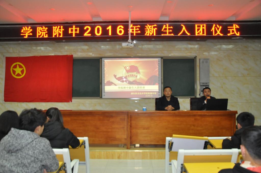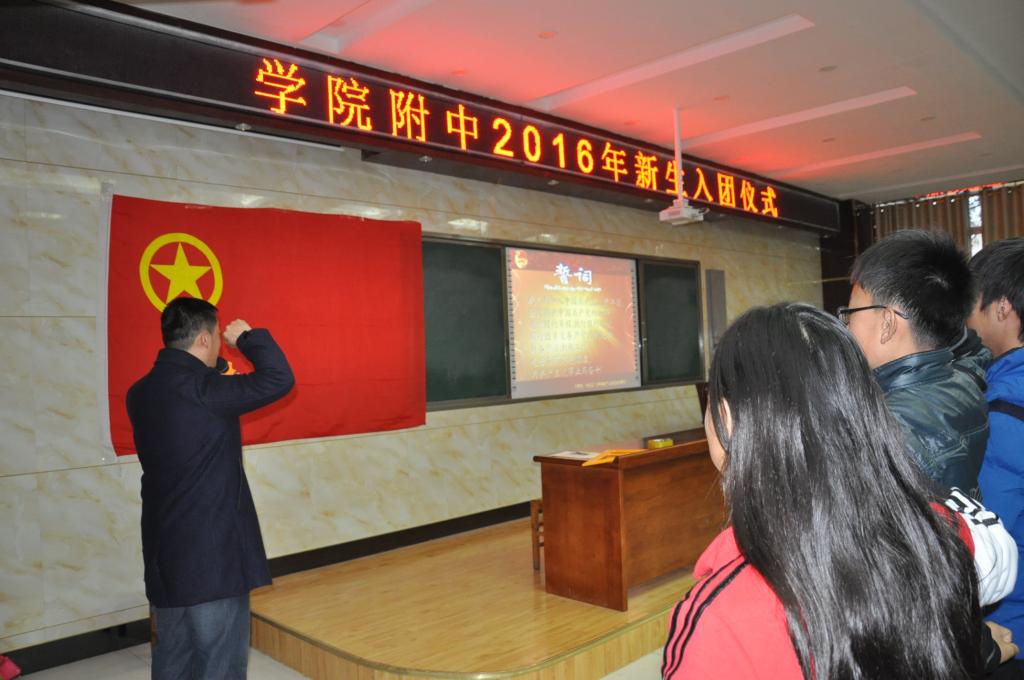 11月15日我校在阶梯教室举行了“2016年新生入团仪式”,庄严的红色团旗、激昂的共青团团歌,为这次新团员入团宣誓仪式平添一分肃穆。