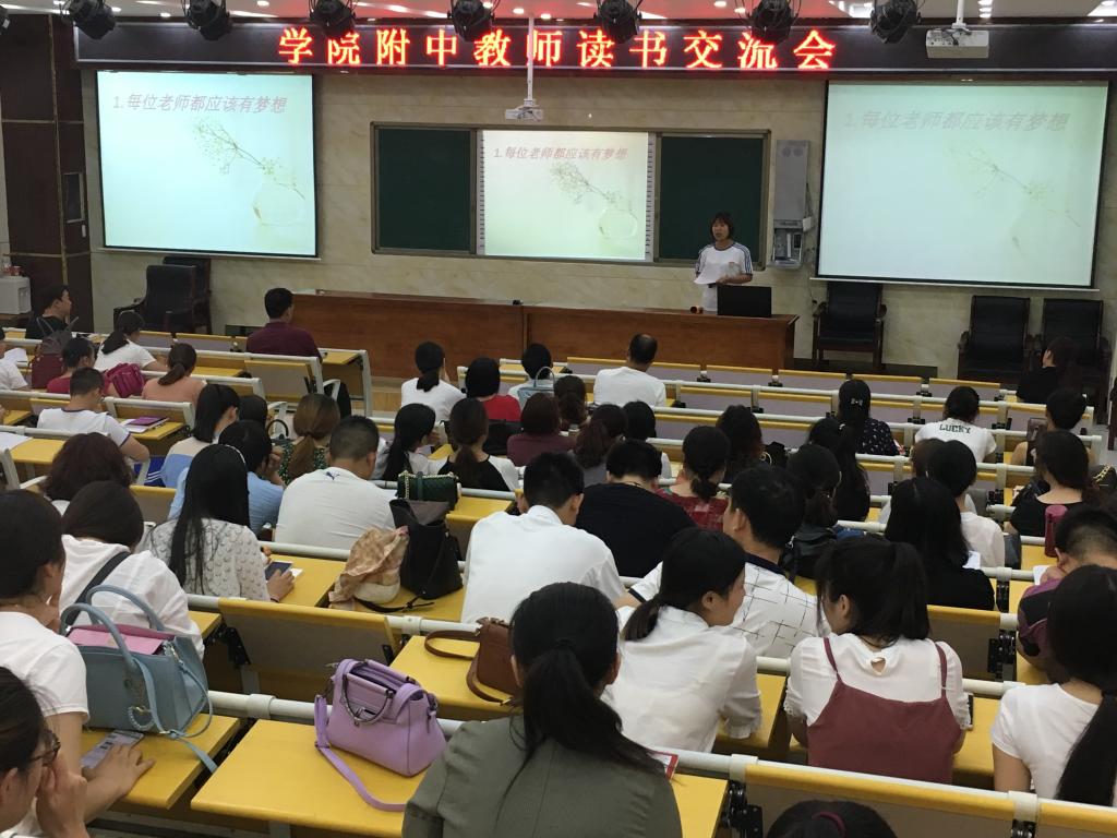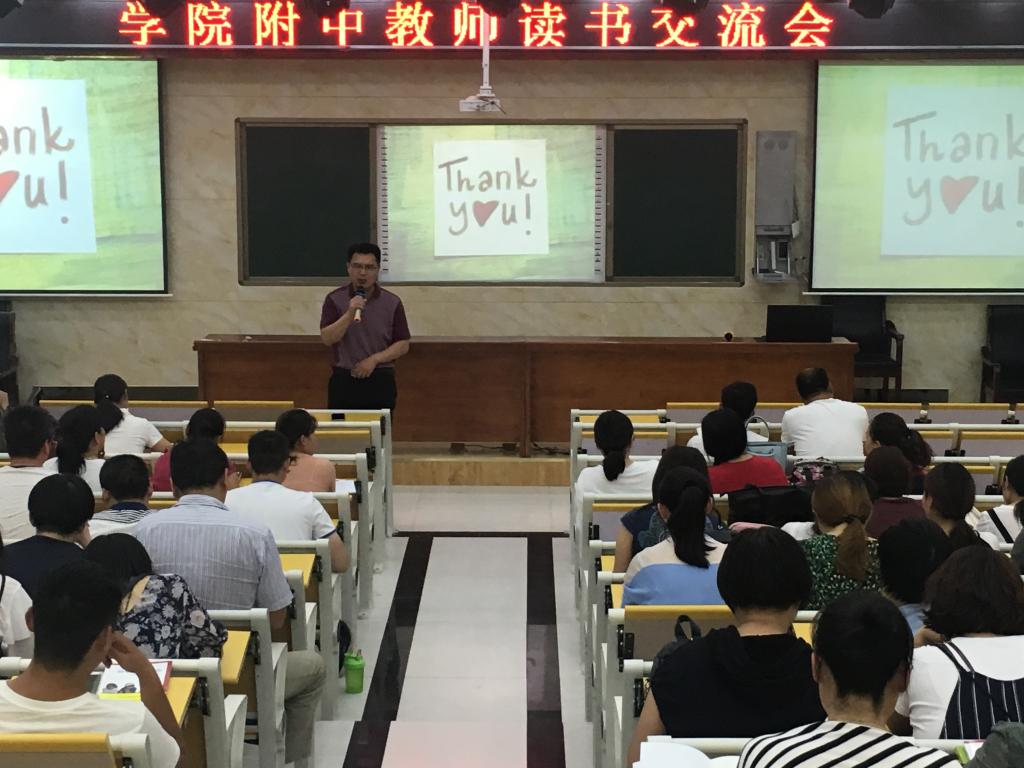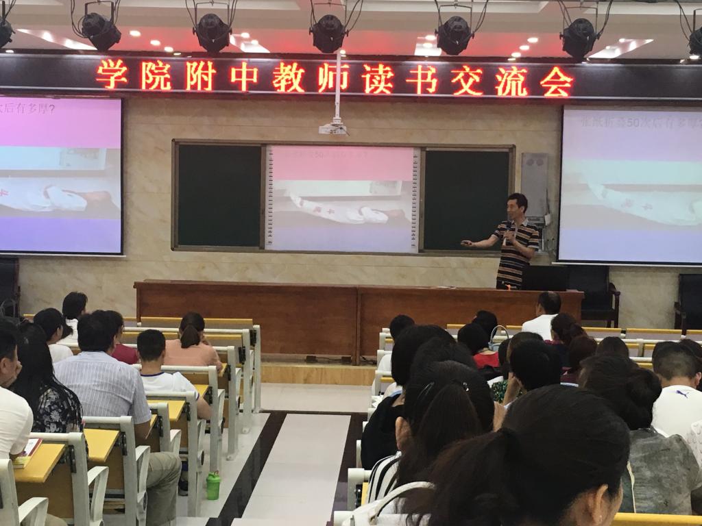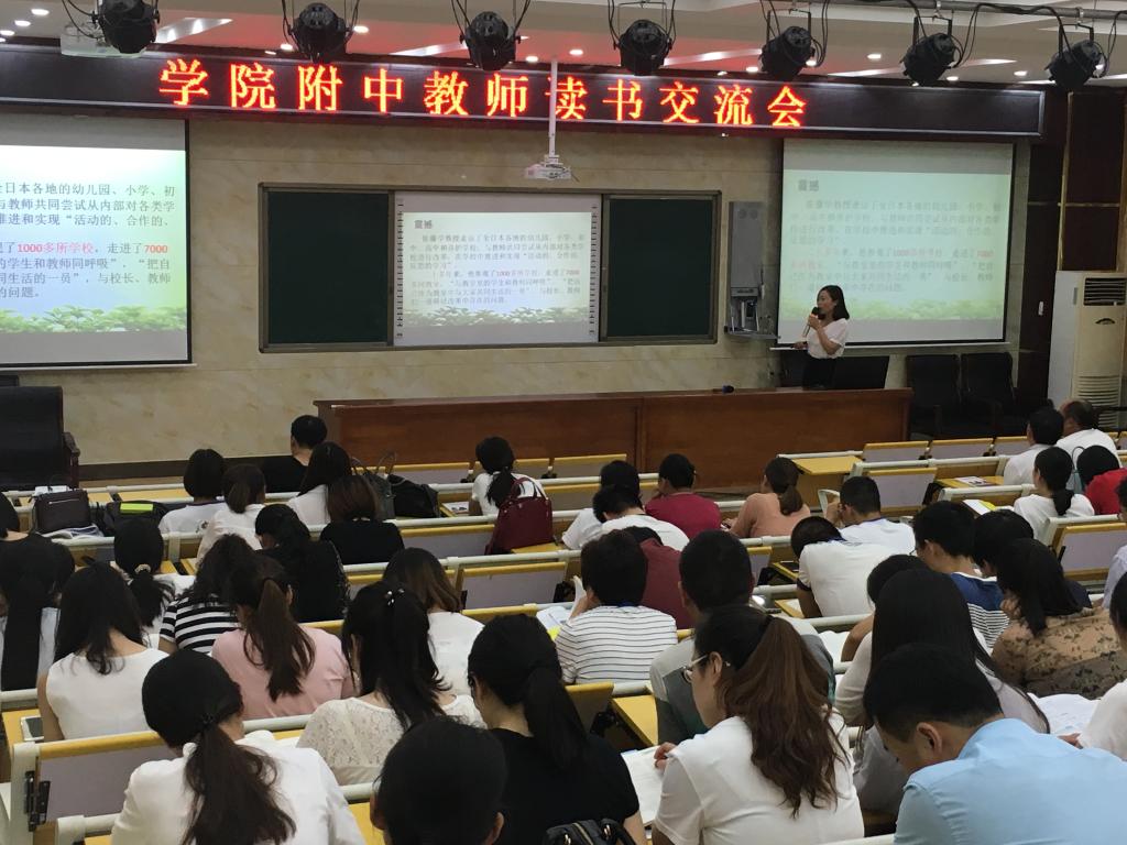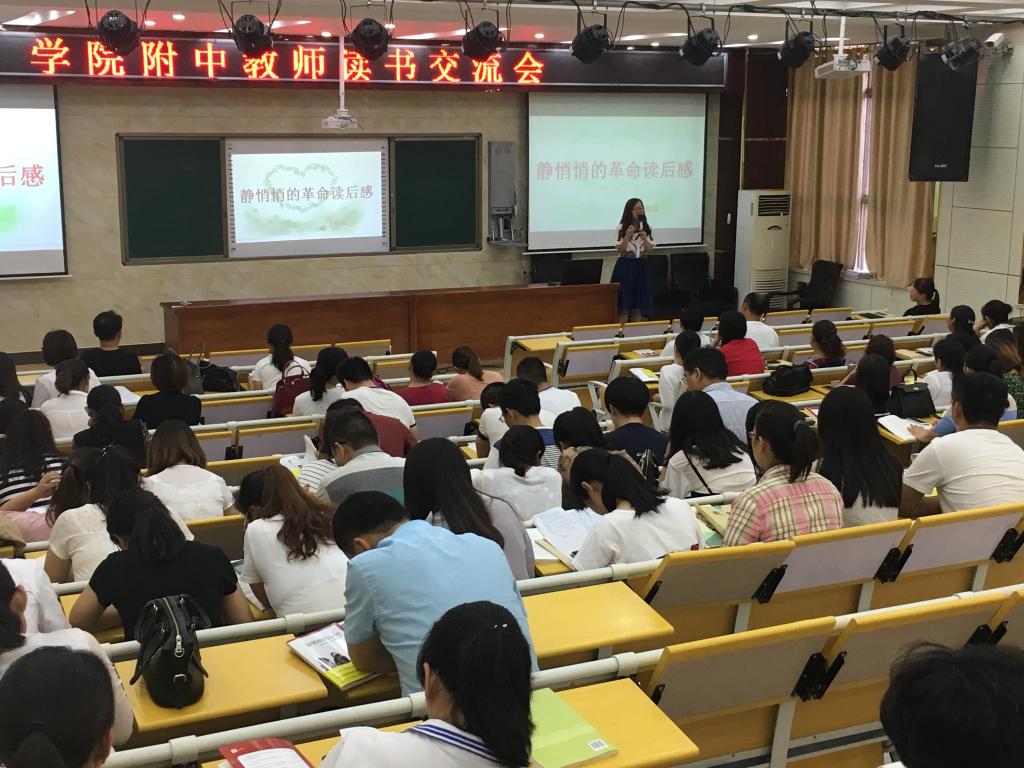 在书籍中,我们收获着知识,采撷着智慧,汲取着营养。 6月12日下午,"教师读书交流会"如期举行:梁应康老师的"以学为中心"、刘俊荣老师的"润泽的课堂"、乔志芳老师"书籍带来的震撼"、王敬霞老师的"用心倾听"、赵亚芳老师的"读书四点感悟",五位老师从不同角度畅谈读《静悄悄的革命》与《学生第二》这两本书的切身感受,让老师们收获颇多。 读书、写作已成为附中老师的一种生活方式。老师们在读书中开拓视野,丰富知识,增长智慧,让自己的工作闪耀着睿智的光彩,充满着创造的快乐。