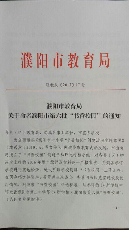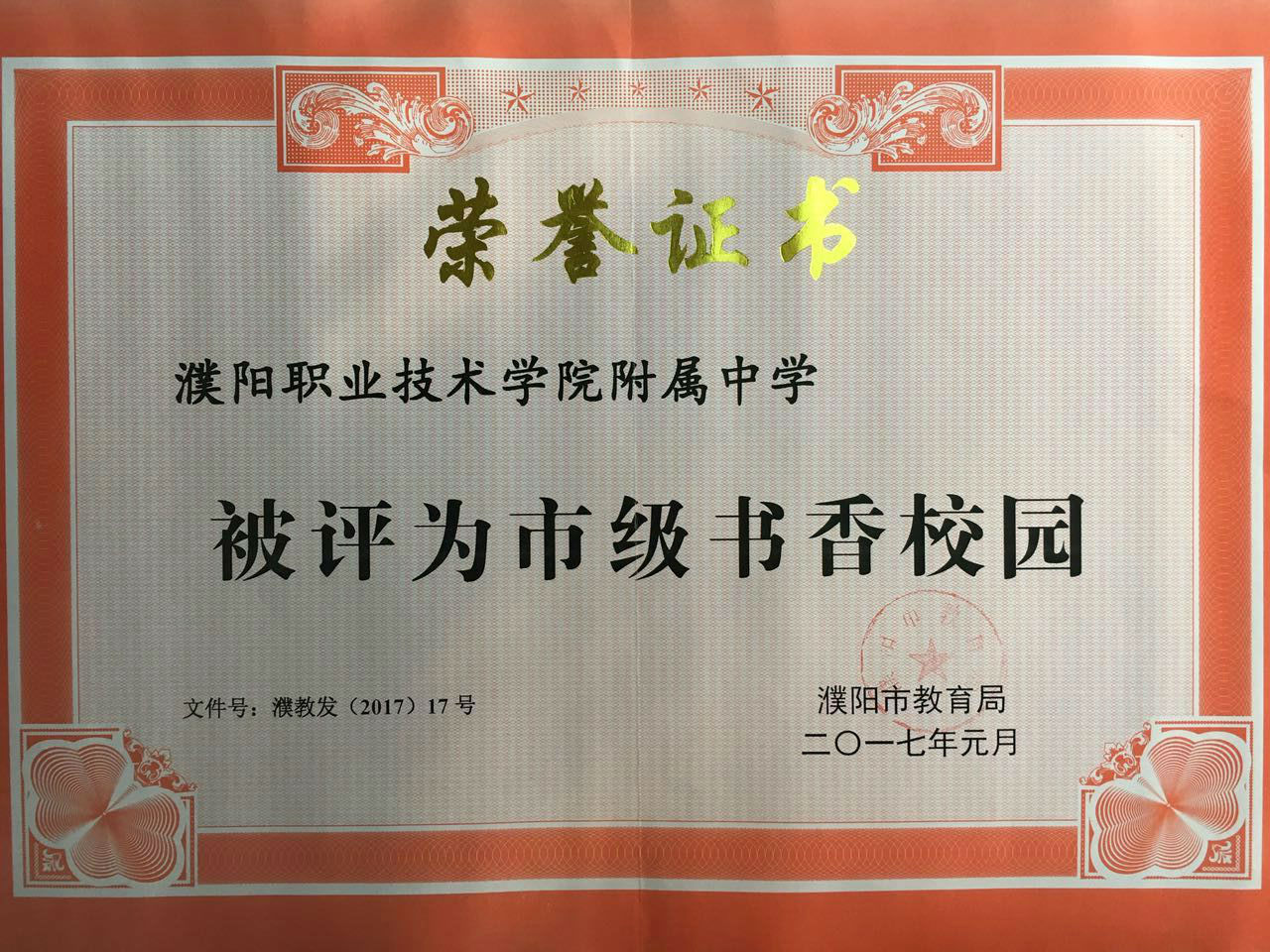在学校领导的大力支持与指导下,经过全校师生共同努力,举办多种读书活动:大家读经典专著,谈心得感悟,厚人生积淀。我校“市级书香校园”创建成功。 “腹有诗书气自华”,让经典点亮我们的人生,让书香洋溢生命的魅力。“书香校园”的成功创建,为学校的文化氛围领航。“读书好,读好书,好读书”将成为我们附中人坚定的信念和永恒的追求。