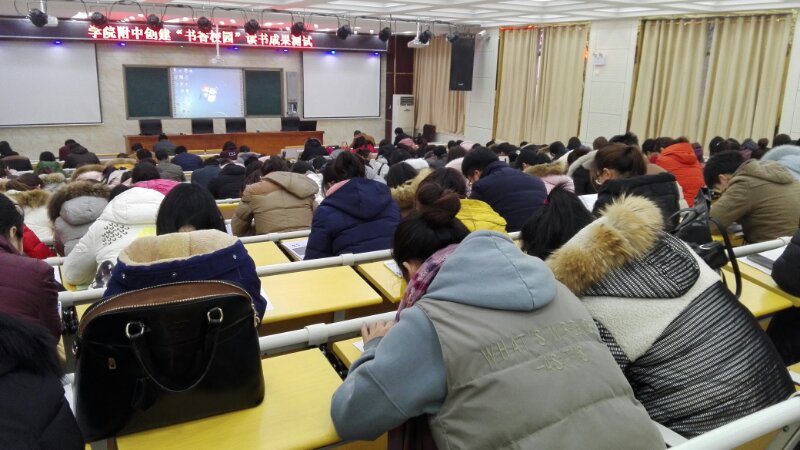 本学年,为创建“书香校园”,为开阔教师视野和提升教师文化内涵,我校共举行11次教师集中读书学习活动,1次读书交流会。为检测教师一学年来的读书成果,12月28日下午,学校进行了读书成果测评。测评内容包含教育教学理论、文学常识、教师专业化成长、对建设书香校园的建议等等。教师梳理知识、认真答题,为一年来的读书活动交了份满意的答卷。