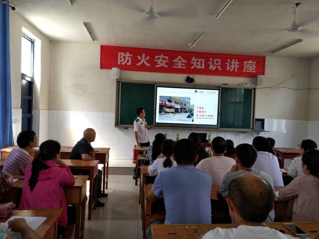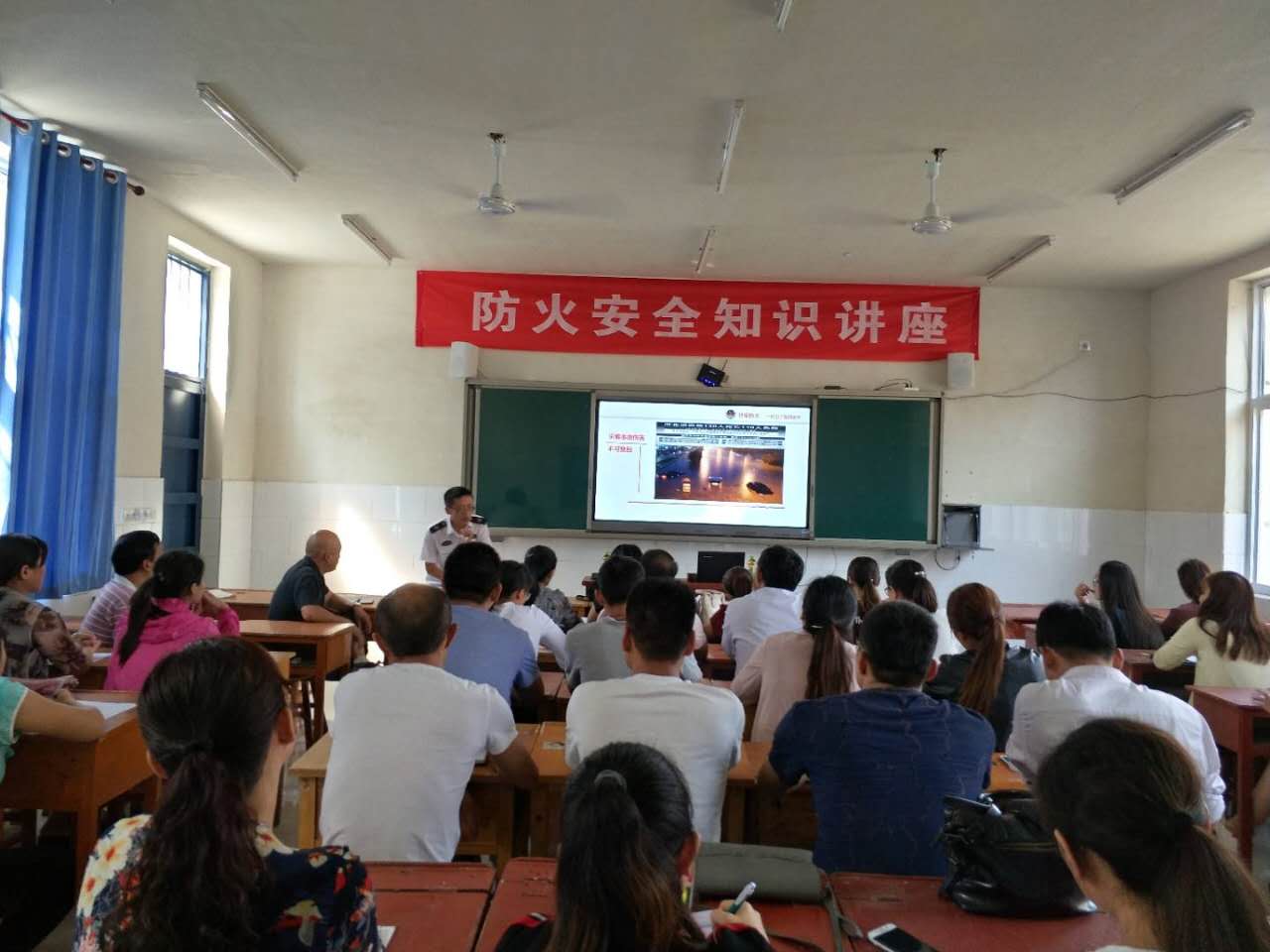 9月13日上午,我校初中部邀请濮阳消防大队孙亚帅讲师,对教职工进行防火安全知识培训。